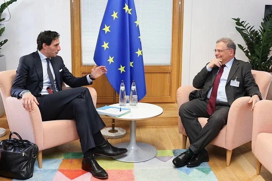 Министърът на околната среда и водите Юлиян Попов днес се срещна с европейския комисар по въпросите на климата Вопке Хукстра относно стратегическата роля на въглеродните политики на ЕС и тяхното влияние върху европейската конкурентоспособност.
