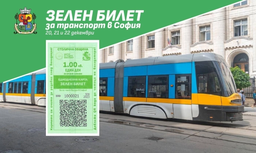 За първи път през този сезон Столична община въвежда Зелен билет за пътуване в градския транспорт за събота (20.12.2025 г.), неделя (21.12.2025 г.) и понеделник (22.12.2025 г.). В същите дни паркирането в буферните паркинги на метрото ще бъде безплатно за всички жители и гости на столицата.