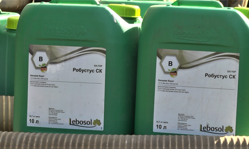 Преди това първото приложение на листен тор в стопанството е направено във втора двойка листа заедно с хербицида. Тогава внесли Аминозол – 100 мл/дка, заедно с Лебозол Бор 100 мл/дка.